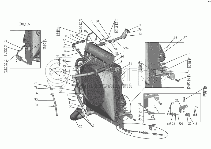 Каталог запасных частей к технике: МАЗ-555142. Установка системы охлаждения 555142-1300005