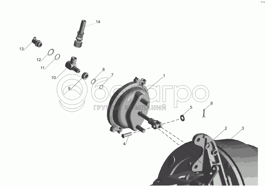 Каталог запасных частей к технике: МАЗ-555142. Установка тормозных камер 6422-3519001-10