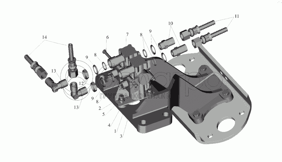 Каталог запасных частей к технике: МАЗ-555142. Установка задних модуляторов 54321-3538004