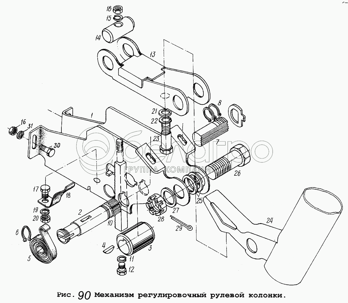 Каталог запасных частей к технике: МАЗ-5551. Механизм регулировочный рулевой колонки