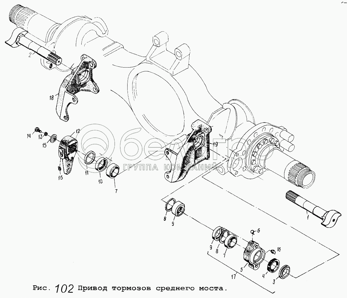 Каталог запасных частей к технике: МАЗ-5551. Привод тормозов среднего моста