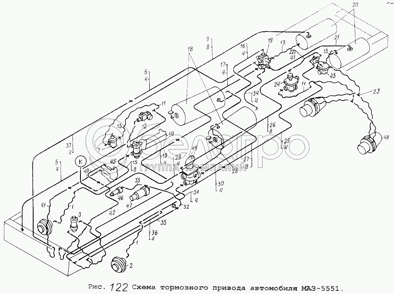 Каталог запасных частей к технике: МАЗ-5551. Схема тормозного привода автомобиля МАЗ-5551