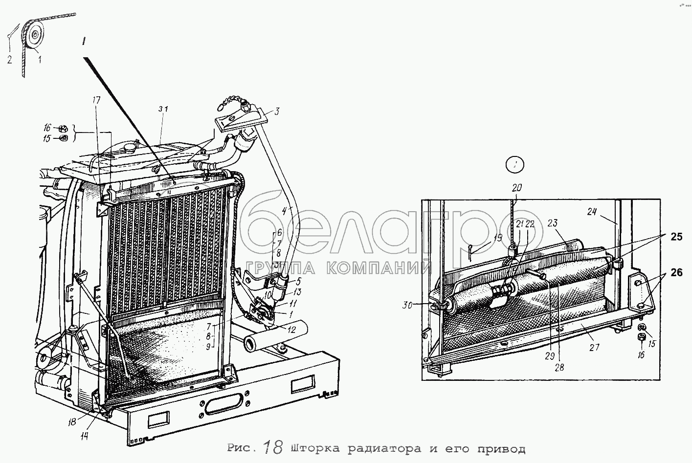 Каталог запасных частей к технике: МАЗ-5551. Шторка радиатора и его привод