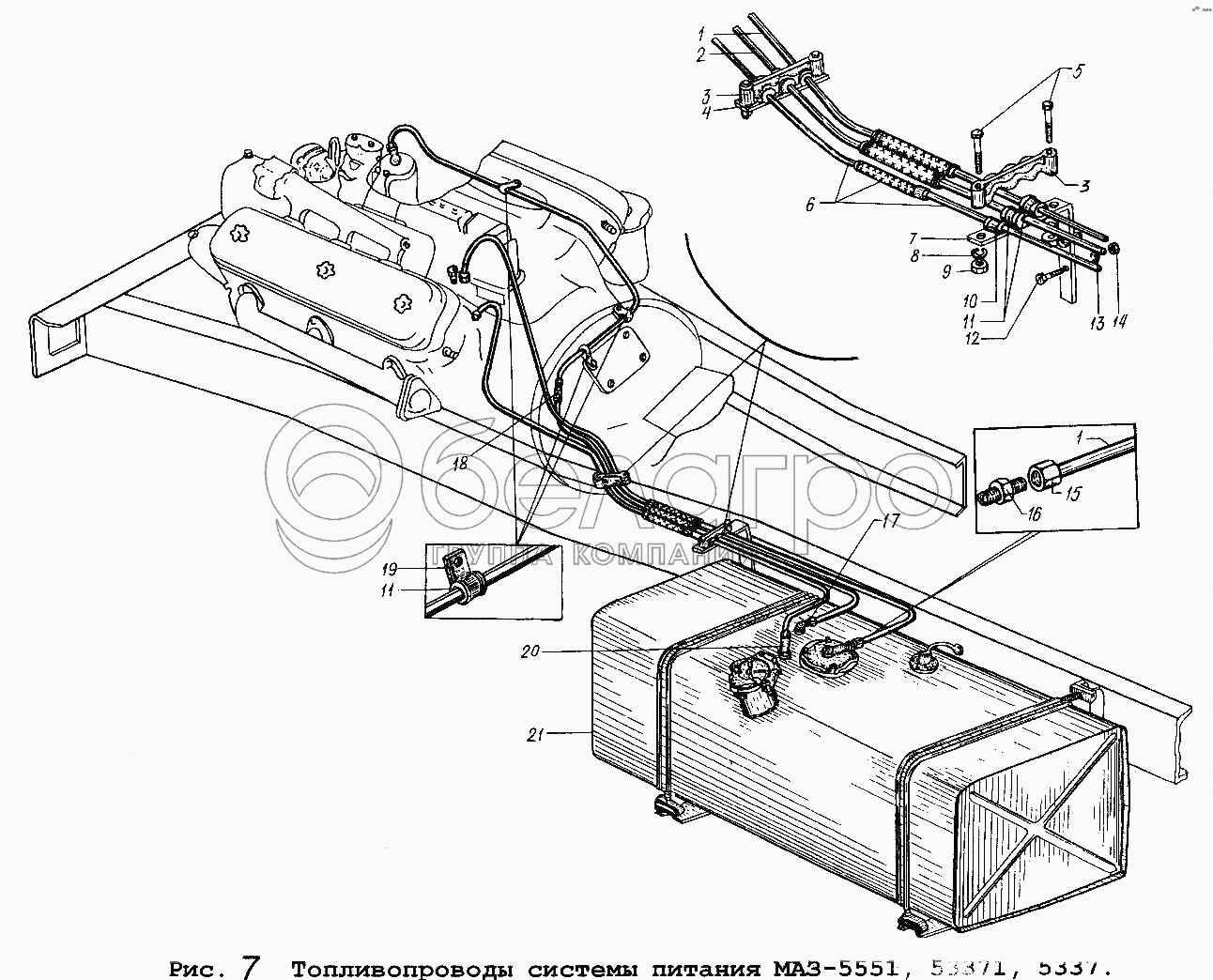 Каталог запасных частей к технике: МАЗ-5551. Топливопроводы системы питания МАЗ-5551,53371,5337