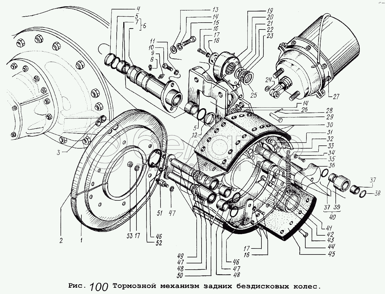 Каталог запасных частей к технике: МАЗ-5551. Тормозной механизм задних бездисковых колес