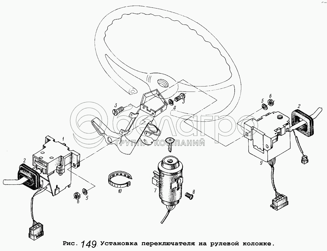 Каталог запасных частей к технике: МАЗ-5551. Установка переключателя на рулевой колонке