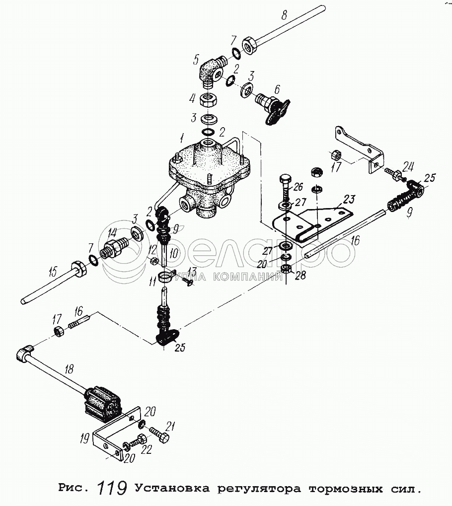 Каталог запасных частей к технике: МАЗ-5551. Установка регулятора тормозных сил