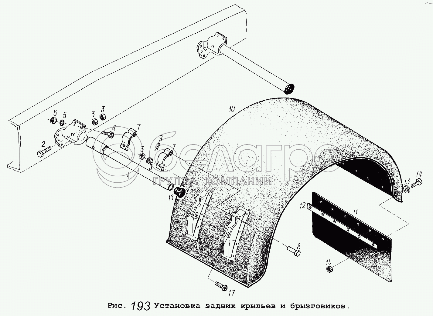 Каталог запасных частей к технике: МАЗ-5551. Установка задних крыльев и брызговиков