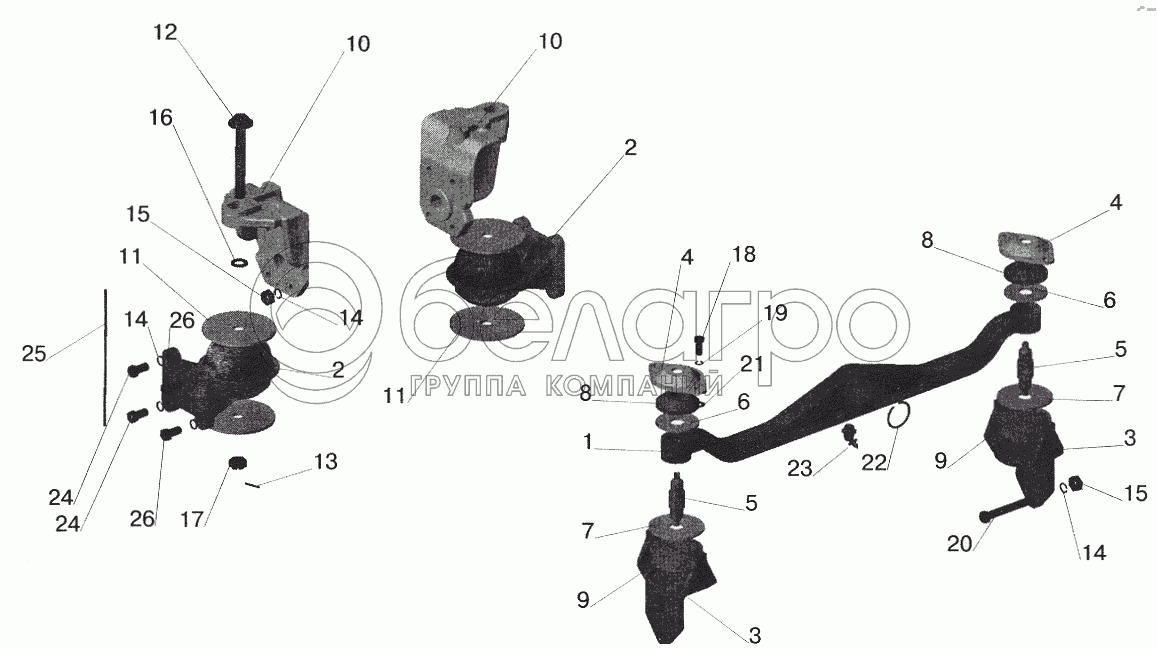 Каталог запасных частей к технике: МАЗ-5551 (2003). Крепление двигателя на автомобиле МАЗ-551605