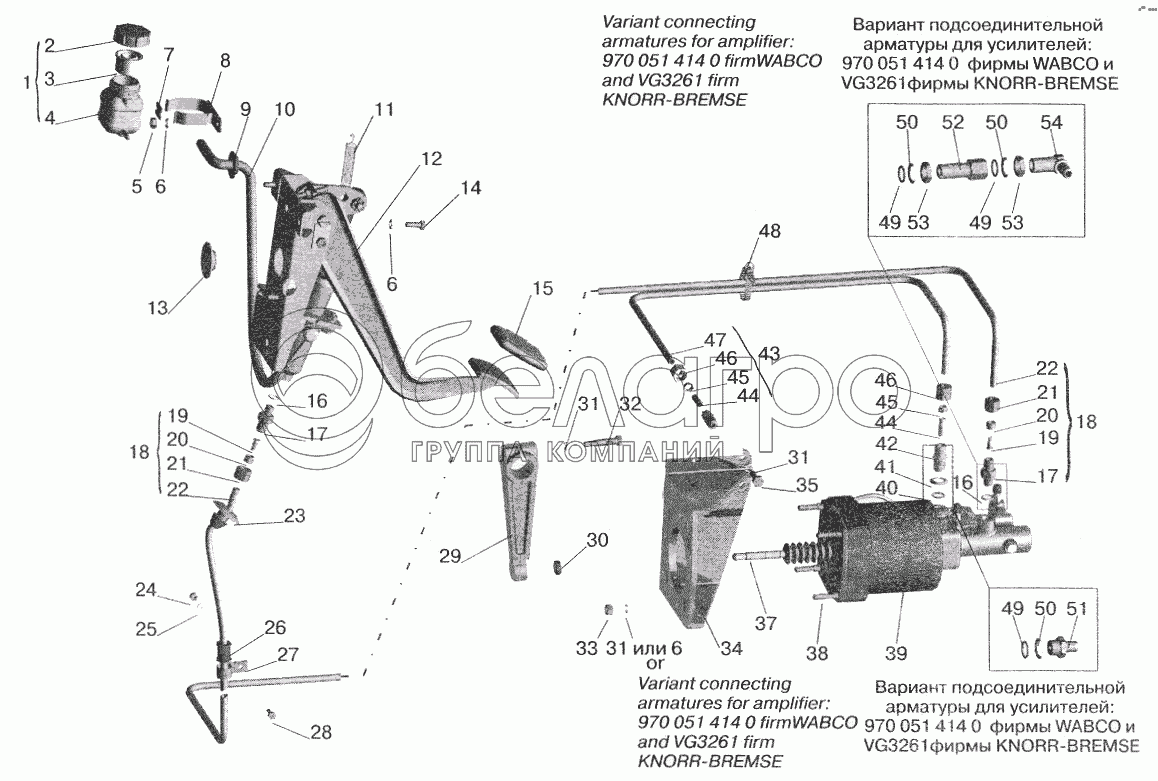 Каталог запасных частей к технике: МАЗ-5551 (2003). Механизм управления сцеплением