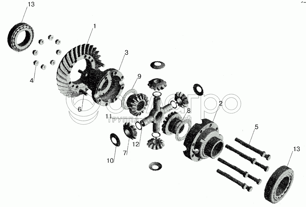 Каталог запасных частей к технике: МАЗ-5551 (2003). Мост задний МАЗ-543208. Дифференциал