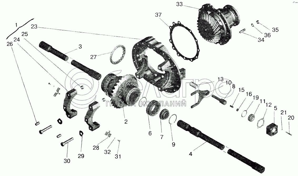 Каталог запасных частей к технике: МАЗ-5551 (2003). Мост задний МАЗ-543208. Редуктор