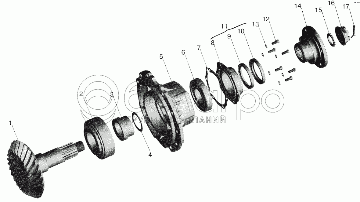 Каталог запасных частей к технике: МАЗ-5551 (2003). Мост задний МАЗ-543208. Шестерня ведущая