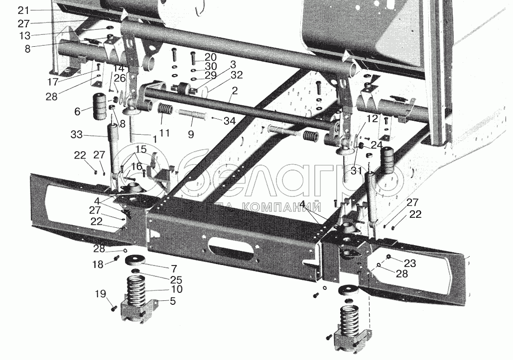 Каталог запасных частей к технике: МАЗ-5551 (2003). Переднее подрессоривание большой кабины