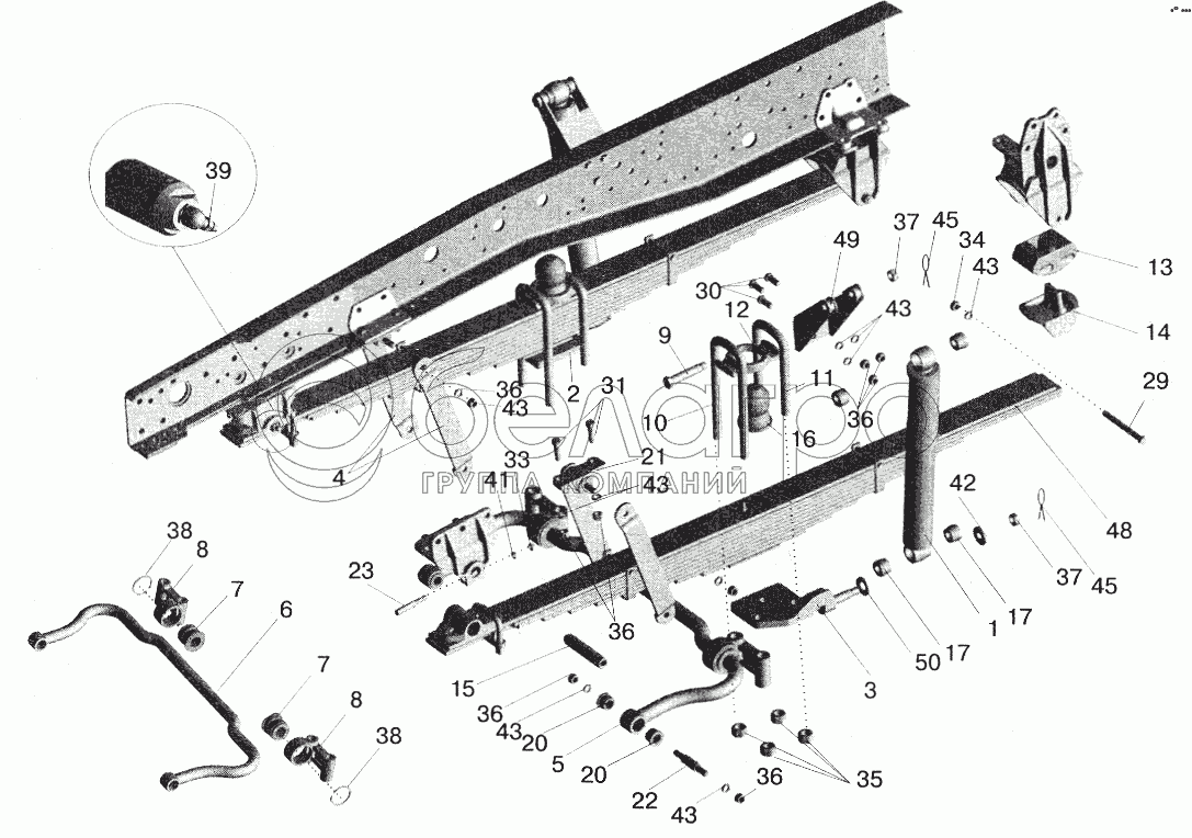 Каталог запасных частей к технике: МАЗ-5551 (2003). Подвеска передняя 642208-2900001