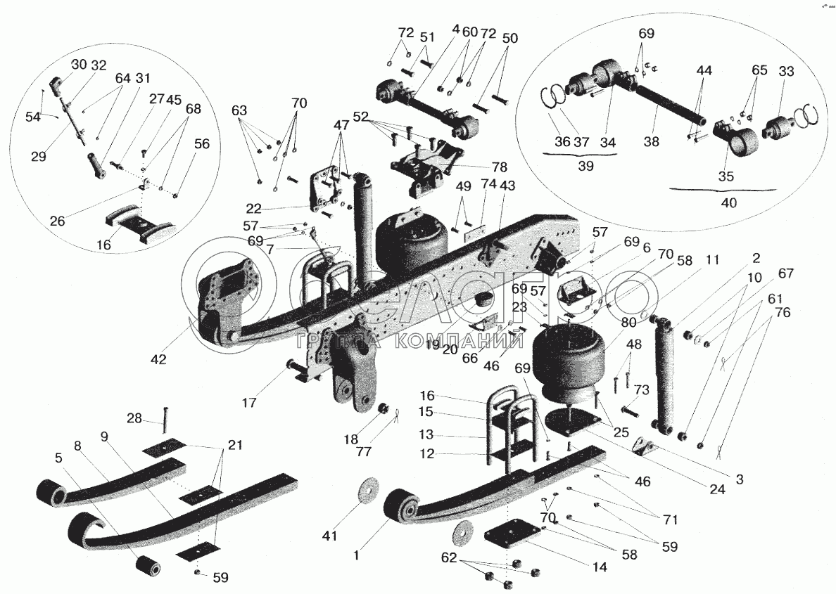 Каталог запасных частей к технике: МАЗ-5551 (2003). Подвеска задняя пневматическая 54327-2900002-20