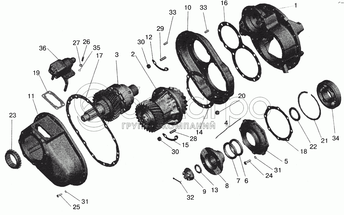 Редуктор среднего моста. Дифференциал с картером редуктора