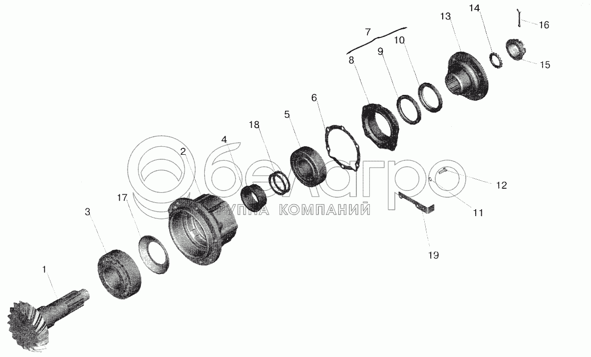Каталог запасных частей к технике: МАЗ-5551 (2003). Редуктор заднего моста. Шестерня ведущая