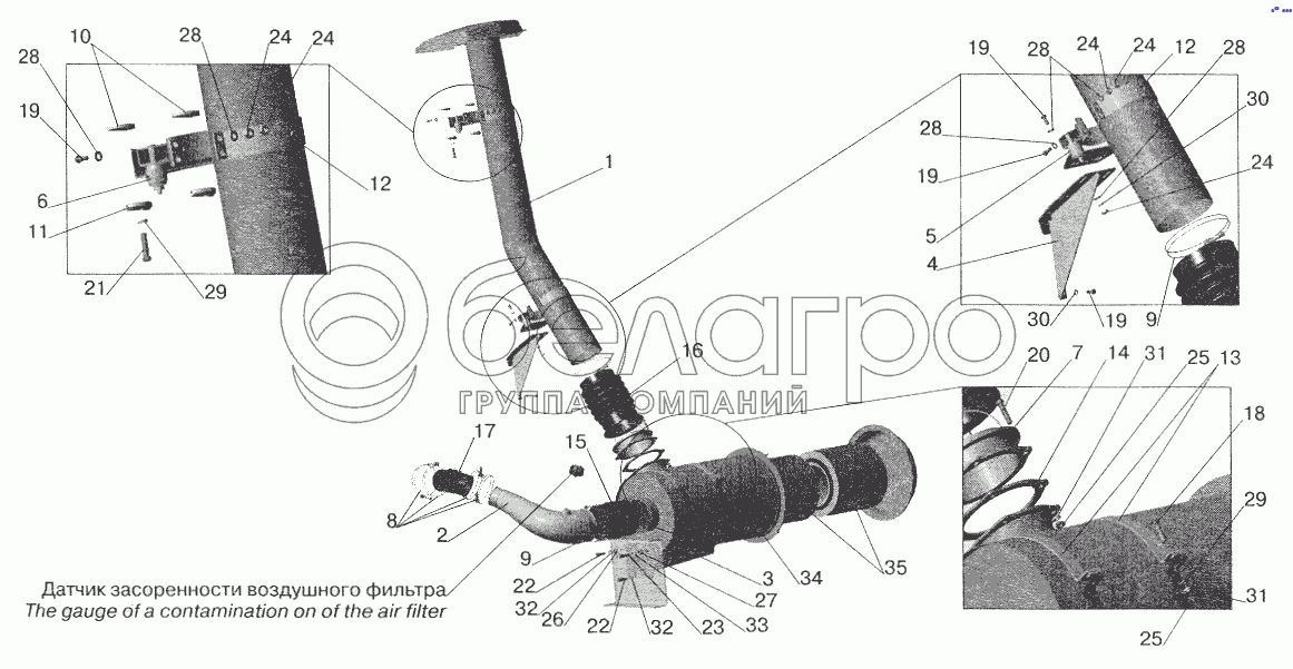 Каталог запасных частей к технике: МАЗ-5551 (2003). Система питания воздухом МАЗ-551605
