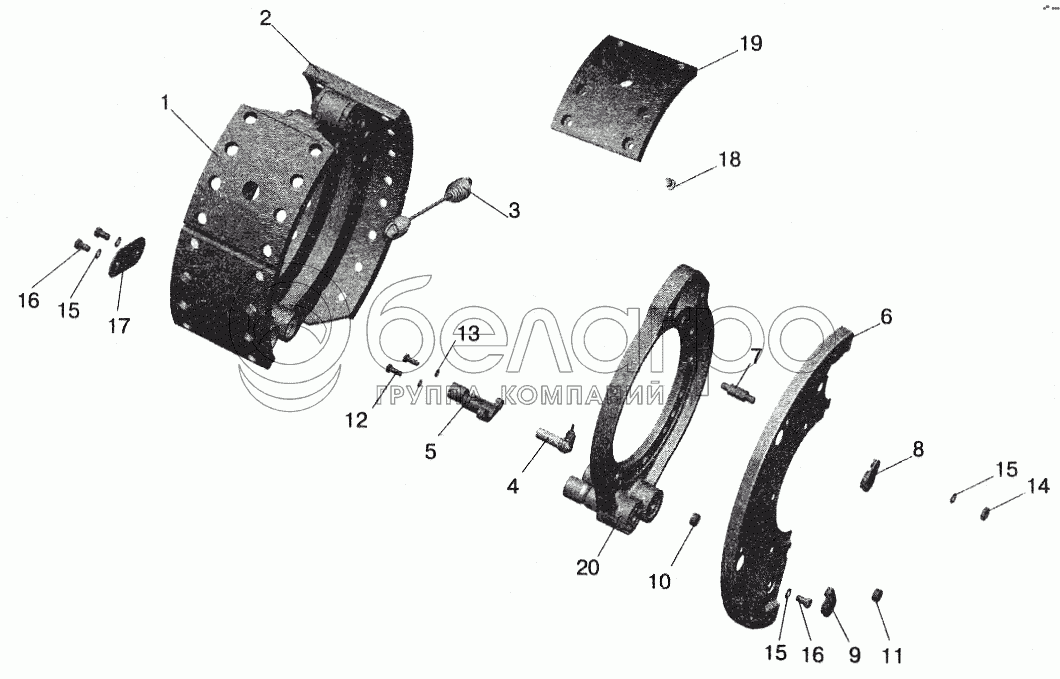 Каталог запасных частей к технике: МАЗ-5551 (2003). Тормоз колеса