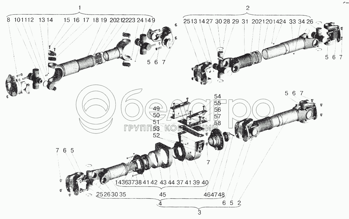 Каталог запасных частей к технике: МАЗ-5551 (2003). Установка карданных валов