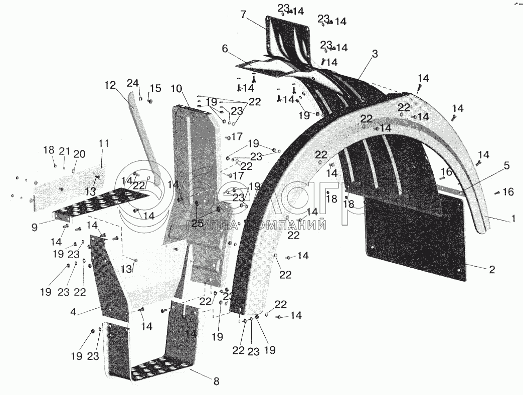 Каталог запасных частей к технике: МАЗ-5551 (2003). Установка оперения на малую кабину