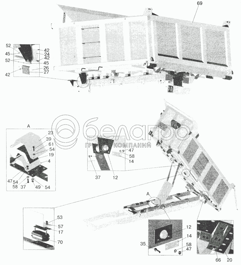 Каталог запасных частей к технике: МАЗ-5551 (2003). Установка платформы 5516-8500020-070