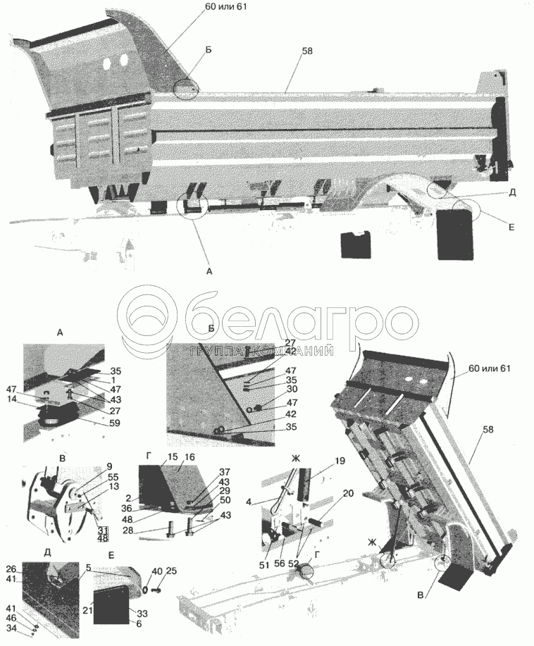 Каталог запасных частей к технике: МАЗ-5551 (2003). Установка платформы 555102-8500002