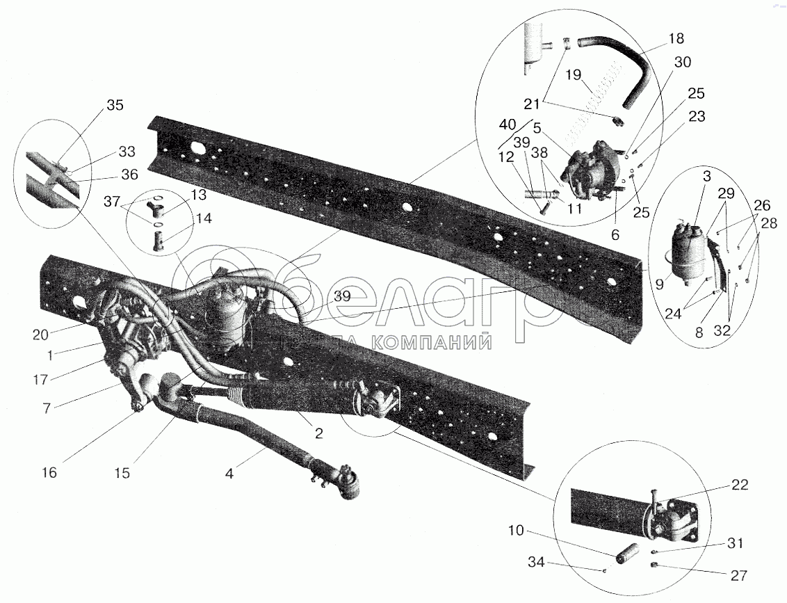 Каталог запасных частей к технике: МАЗ-5551 (2003). Установка рулевого управления