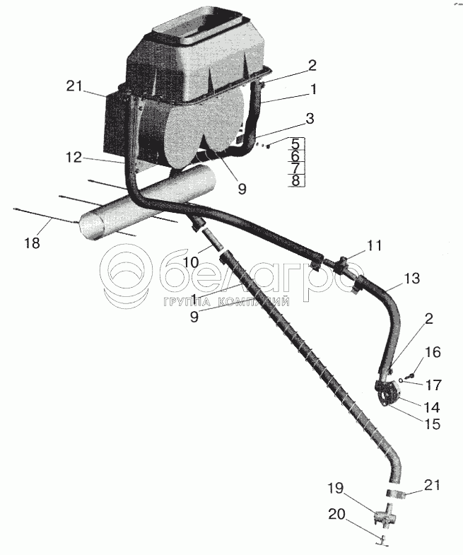 Каталог запасных частей к технике: МАЗ-5551 (2003). Установка шлангов отопителя 54327-8100006-010