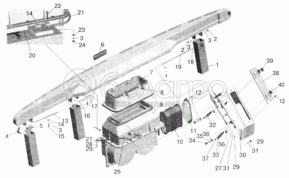 Каталог запасных частей к технике: МАЗ-5551 (2003). Установка воздушных заслонок и отопителя кабины