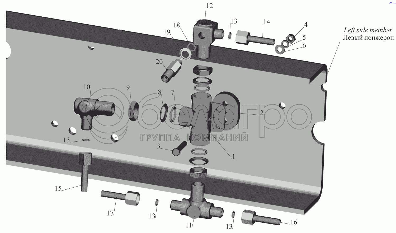 Каталог запасных частей к технике: МАЗ-630333. Крепление клапана двухмагистрального 64221-3562004-10