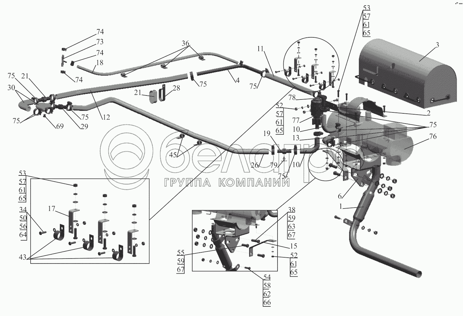 Каталог запасных частей к технике: МАЗ-630333. Крепление предпускового подогревателя 533632-1015001