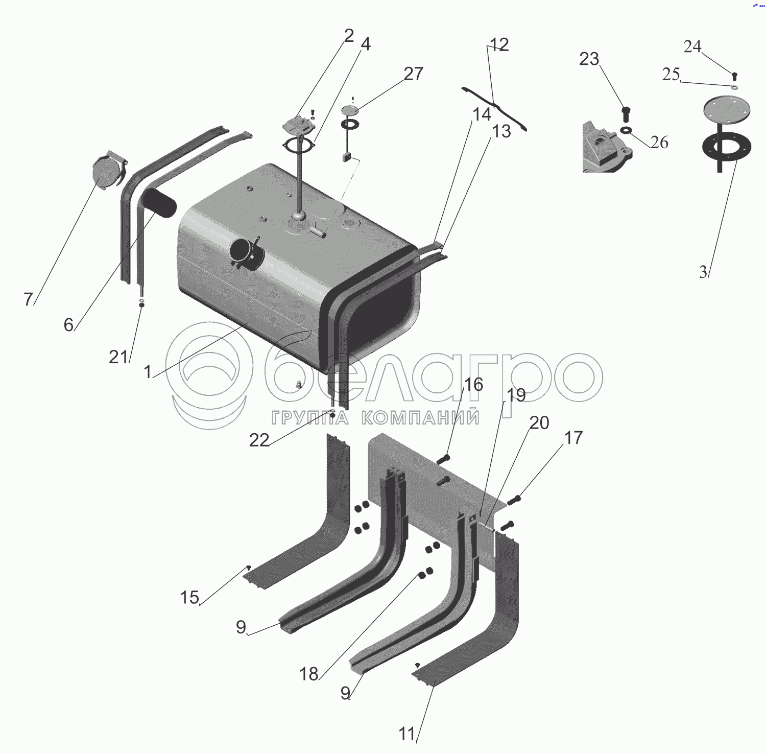 Каталог запасных частей к технике: МАЗ-630333. Крепление топливного бака 533632-1101002-020