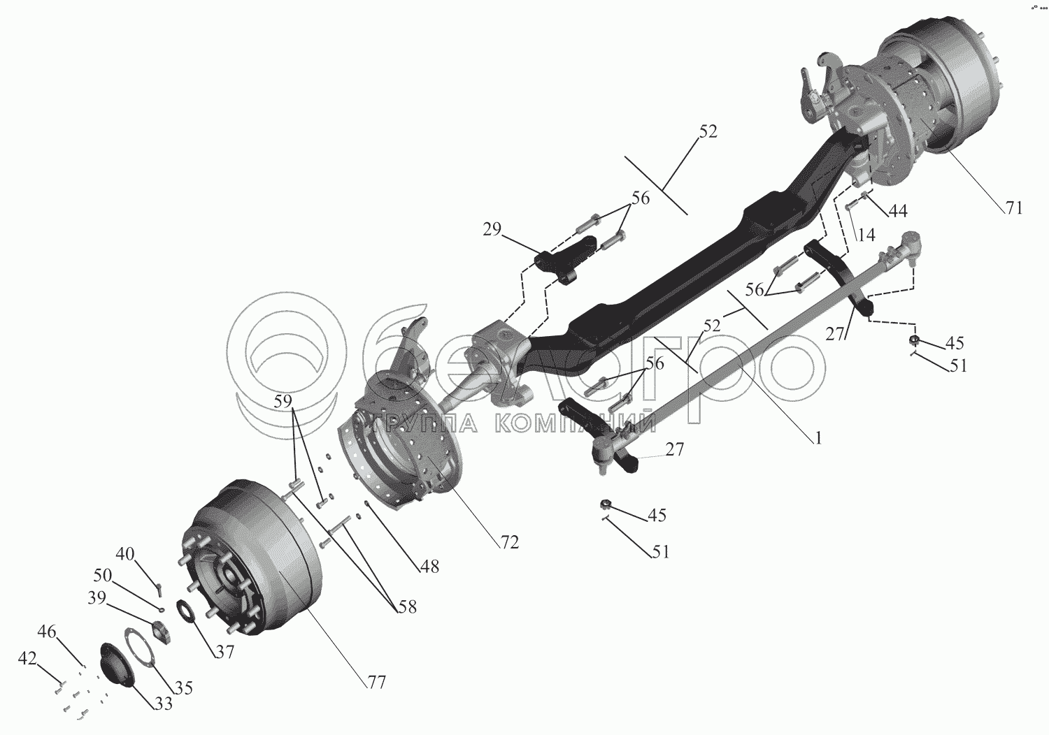 Каталог запасных частей к технике: МАЗ-630333. Передняя ось 6430-3000015-010