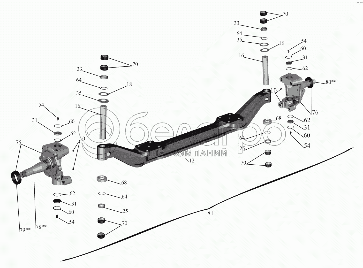 Каталог запасных частей к технике: МАЗ-630333. Передняя ось 6430-3000015-010