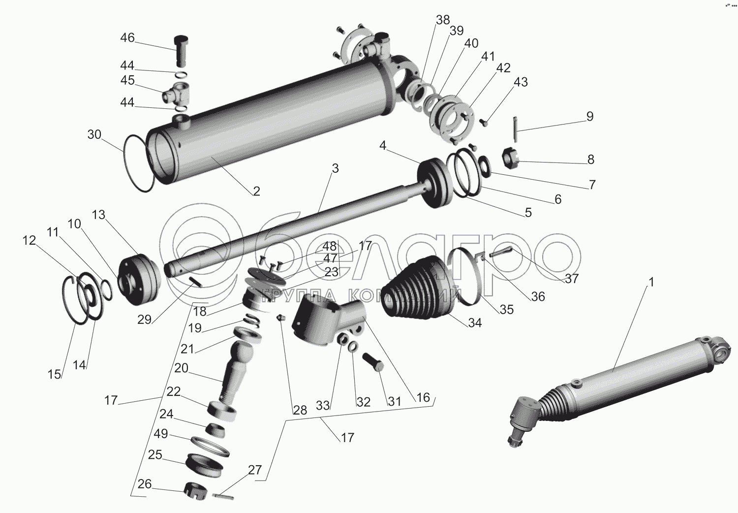 Каталог запасных частей к технике: МАЗ-630333. Силовой цилиндр гидроусилителя рулевого управления 64221-3405004