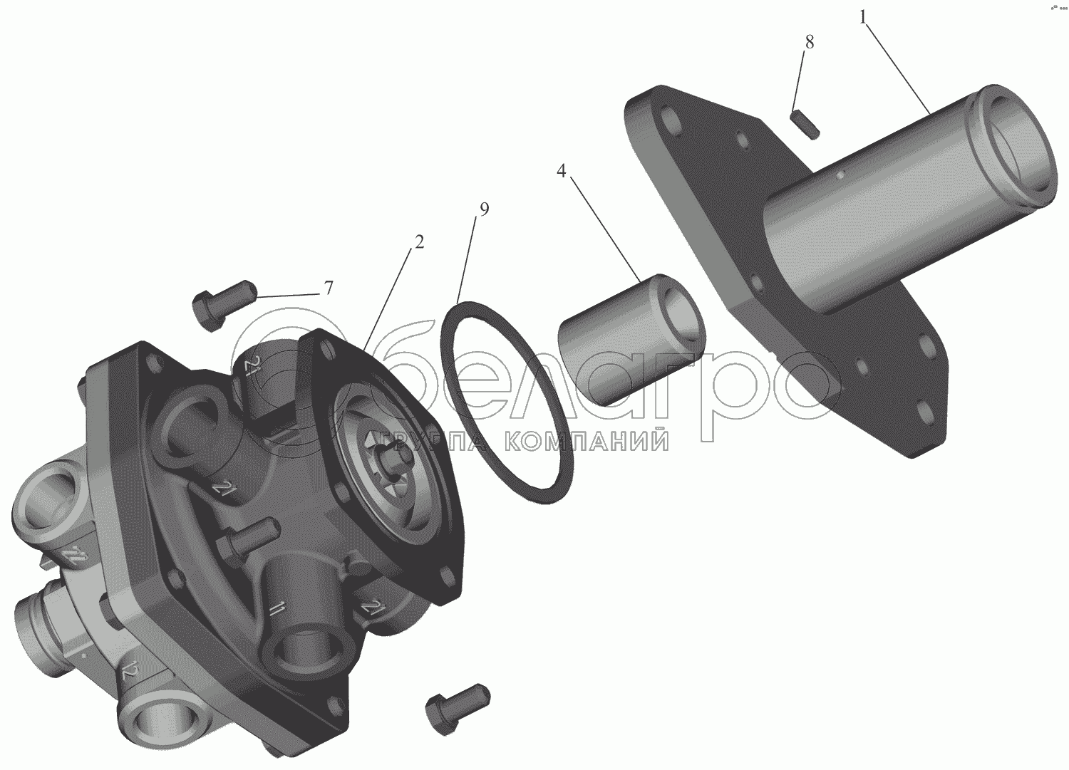 Каталог запасных частей к технике: МАЗ-630333. Тормозной кран 64221-3514108-010