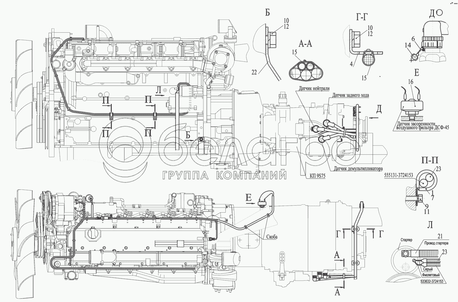 Каталог запасных частей к технике: МАЗ-630333. Установка электрооборудования на двигателе 533632-3700098