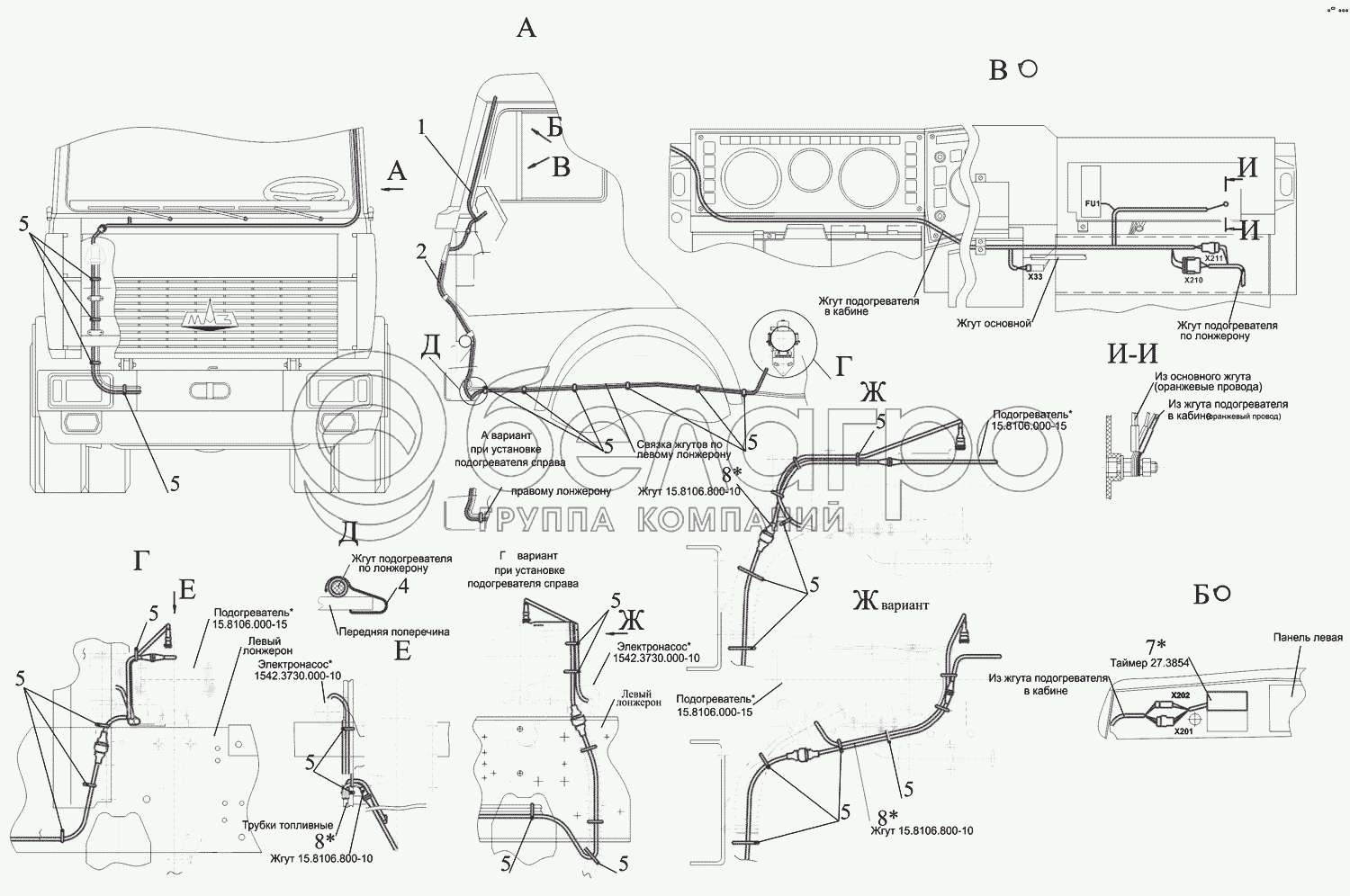 Каталог запасных частей к технике: МАЗ-630333. Установка электрооборудования подогревателя 64221-3700085