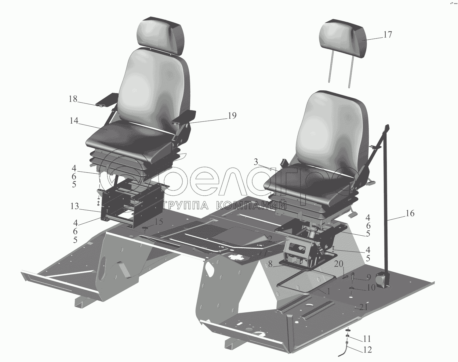 Каталог запасных частей к технике: МАЗ-630333. Установка и пневмопитание сидений 5433-6800006