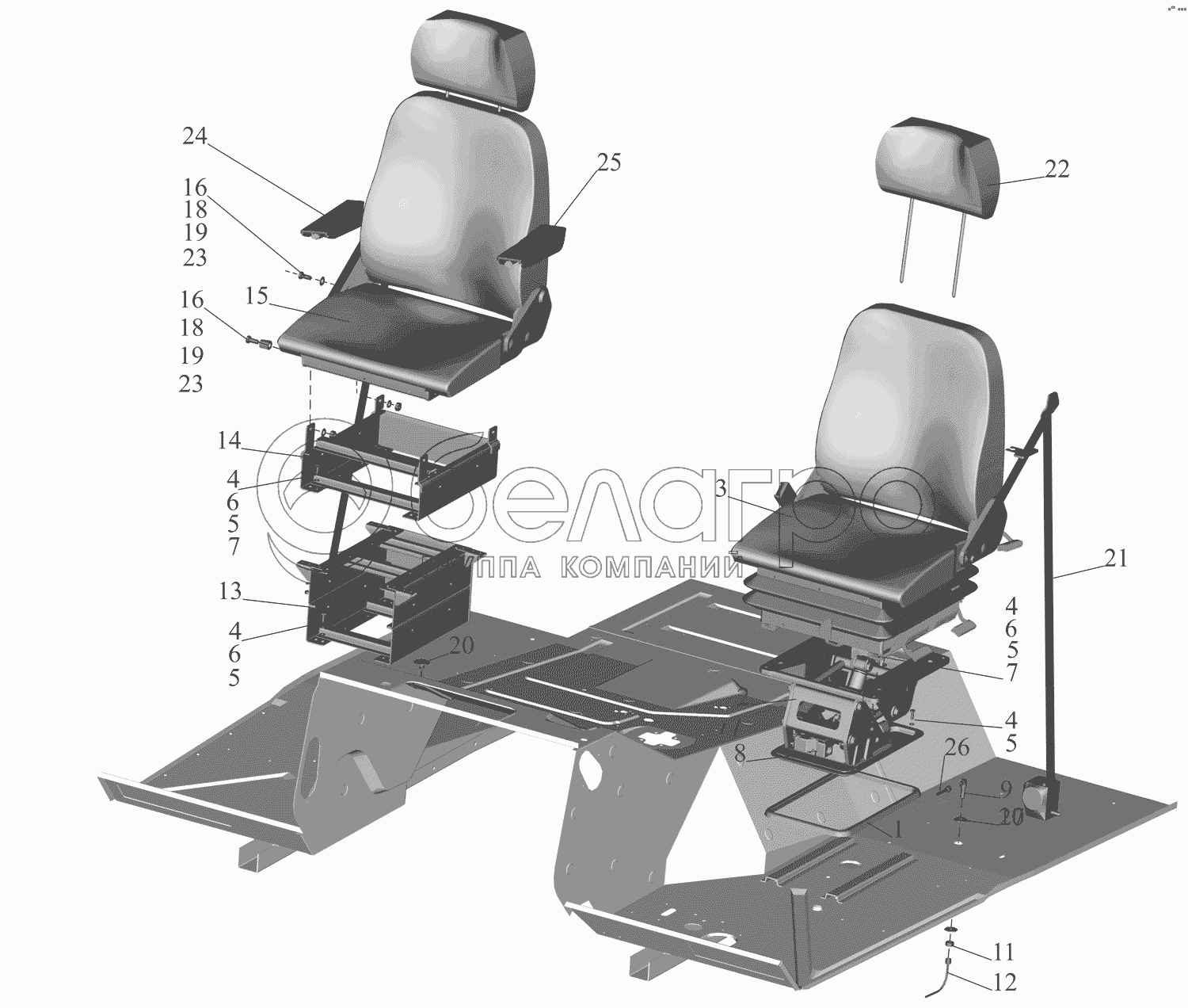Каталог запасных частей к технике: МАЗ-630333. Установка и пневмопитание сидений 5551-6800006-040