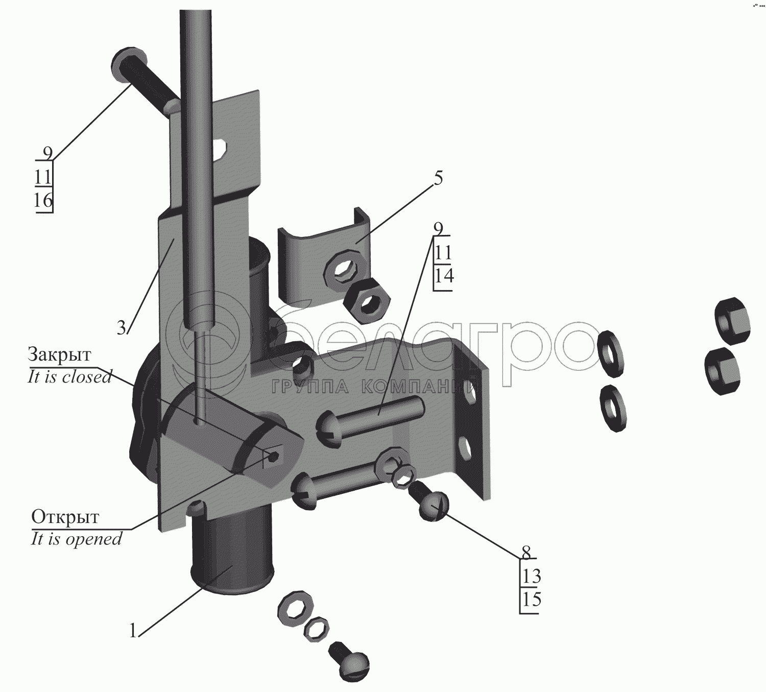 Каталог запасных частей к технике: МАЗ-630333. Установка крана управления отопителем 543205-8100030