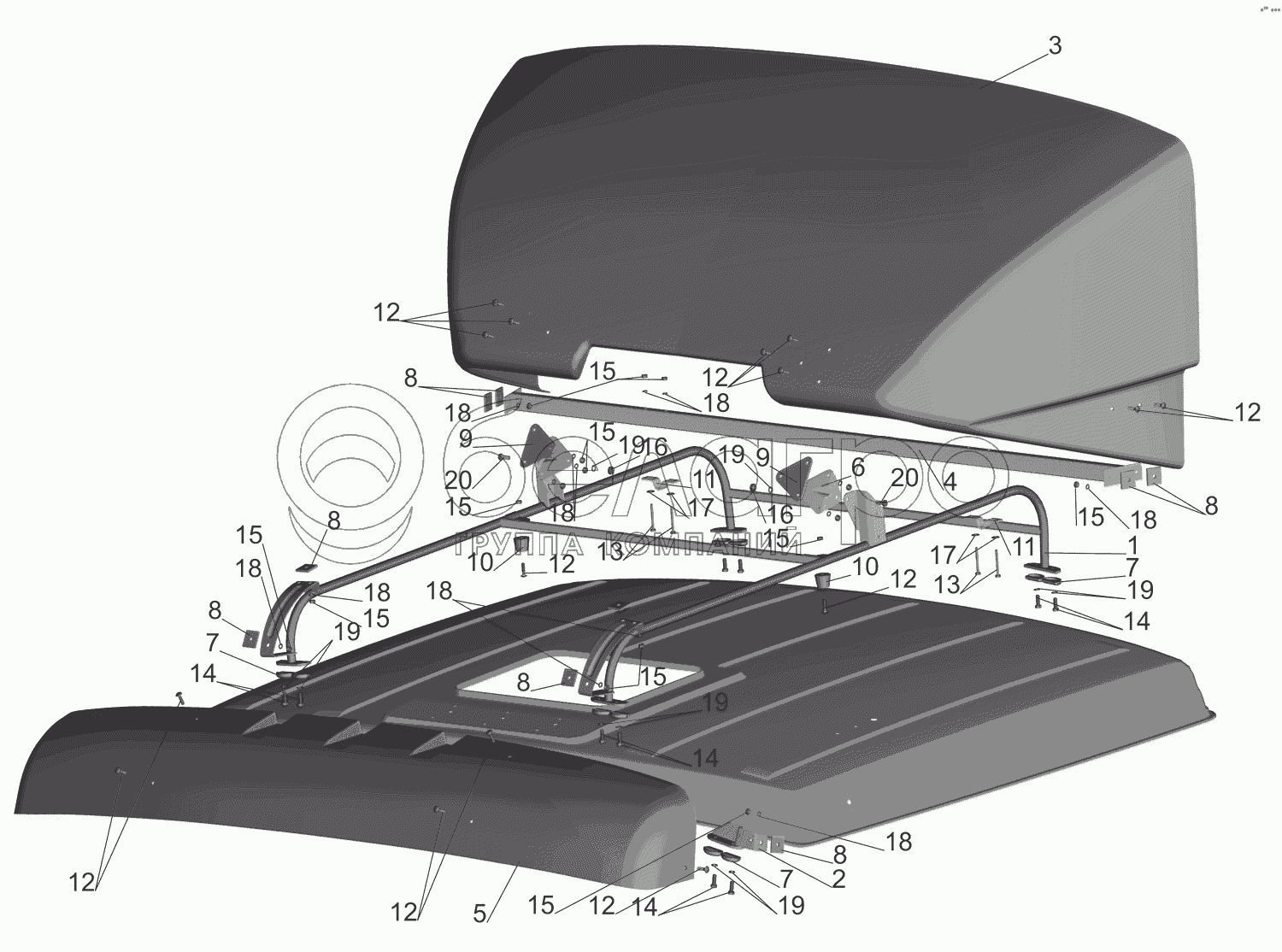 Каталог запасных частей к технике: МАЗ-630333. Установка обтекателей 64221-8000014-10