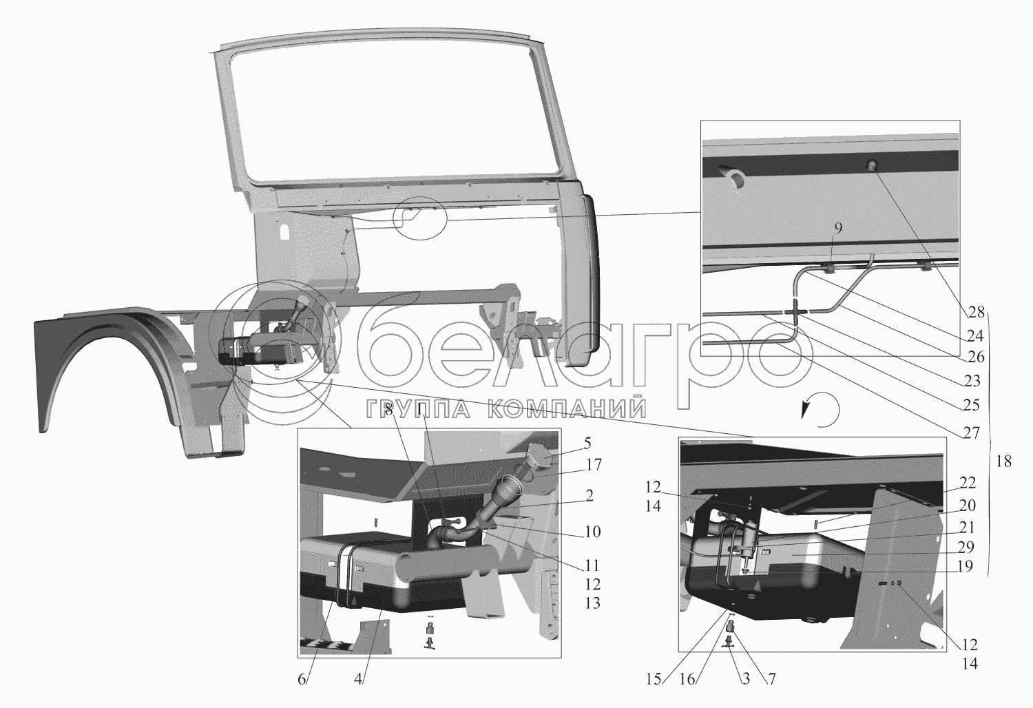 Каталог запасных частей к технике: МАЗ-630333. Установка омывателя 64221-5200008-01
