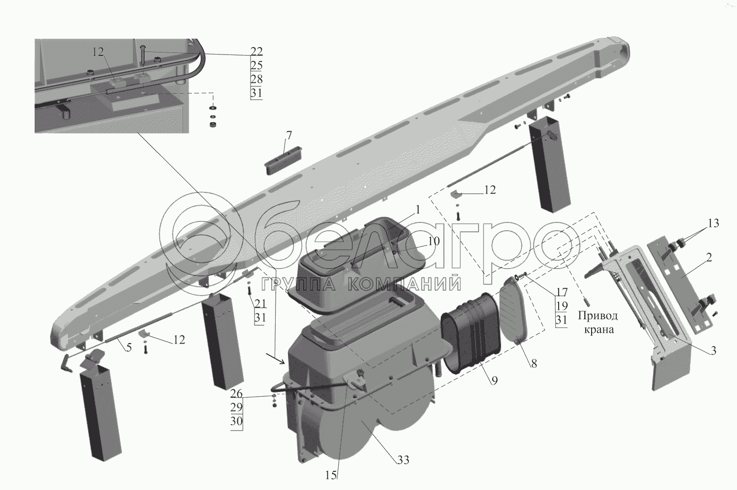 Каталог запасных частей к технике: МАЗ-630333. Установка отопителя