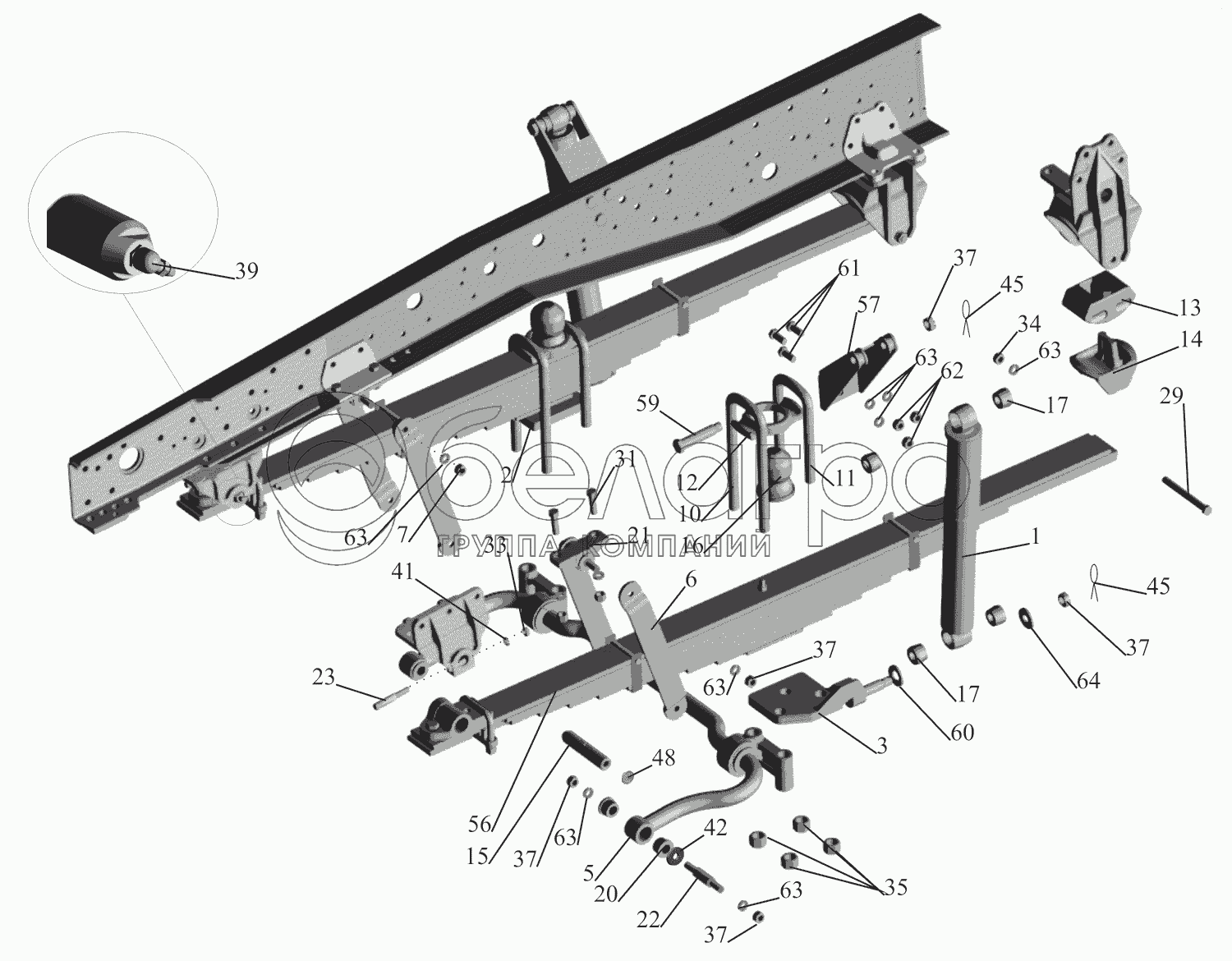 Каталог запасных частей к технике: МАЗ-630333. Установка подвески передней 642208-2900001-010