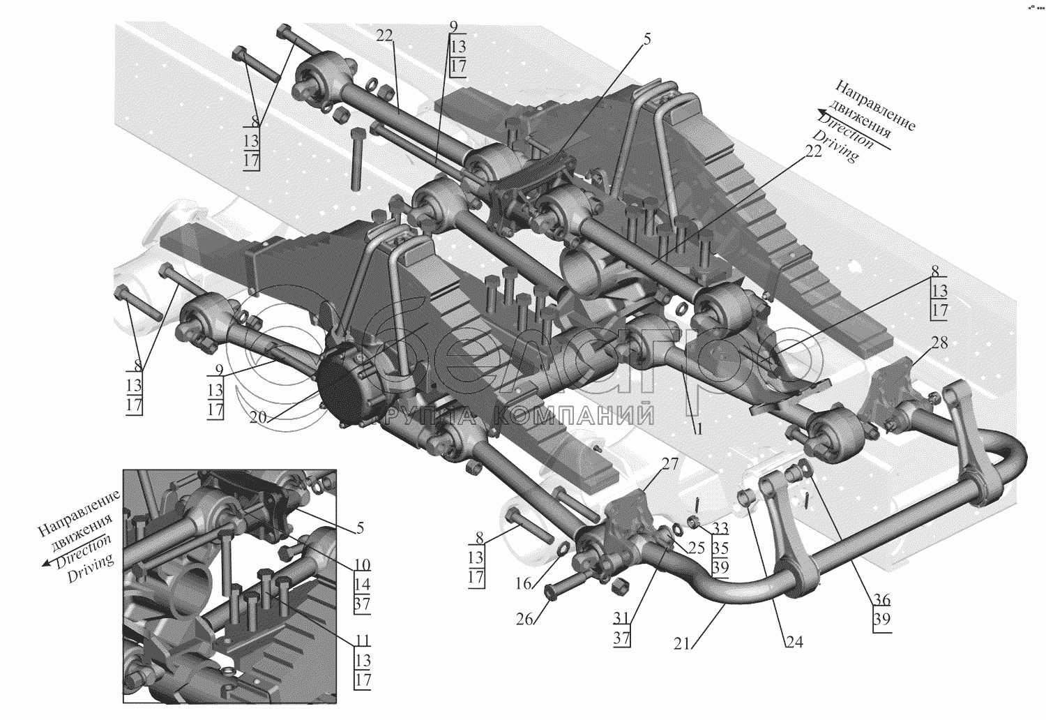 Каталог запасных частей к технике: МАЗ-630333. Установка подвески задней 551605-2900002