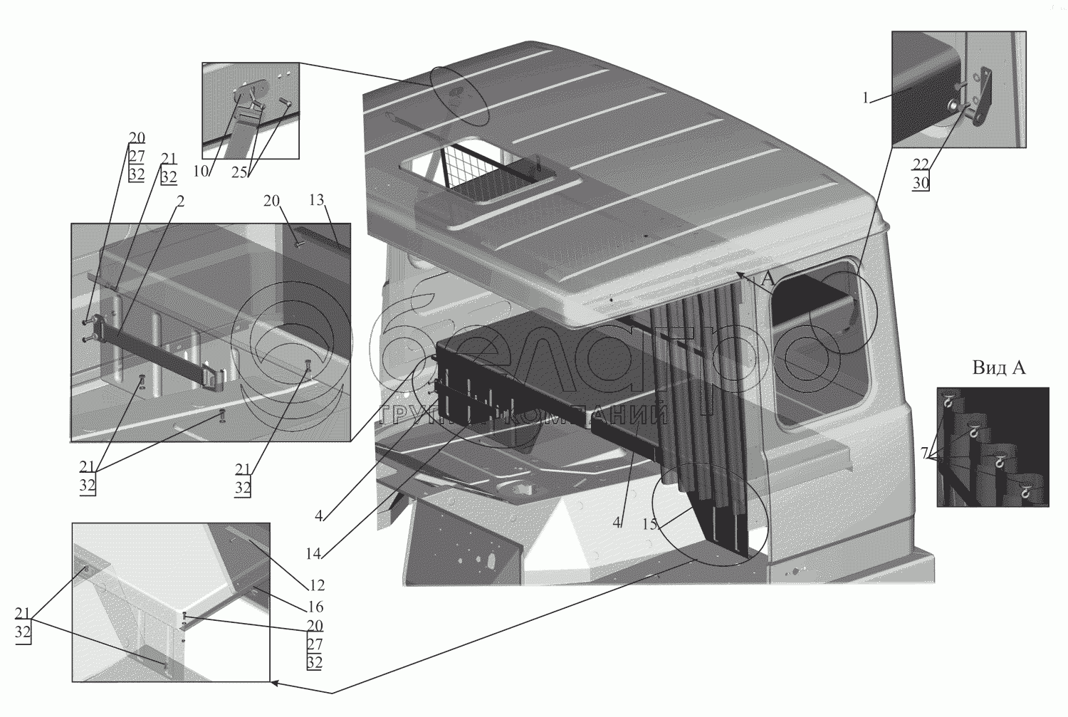 Каталог запасных частей к технике: МАЗ-630333. Установка спальных мест 64221-8200010
