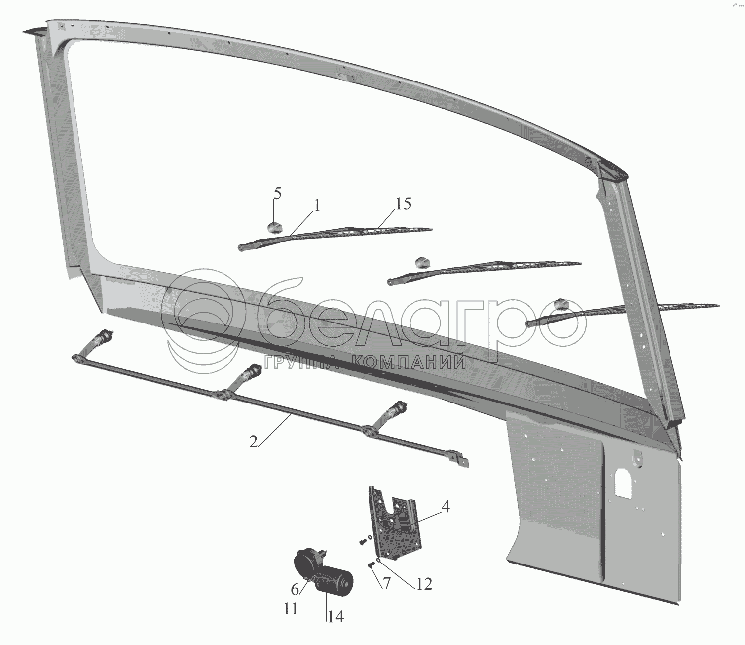 Каталог запасных частей к технике: МАЗ-630333. Установка стеклоочистителя 64221-3700041-010
